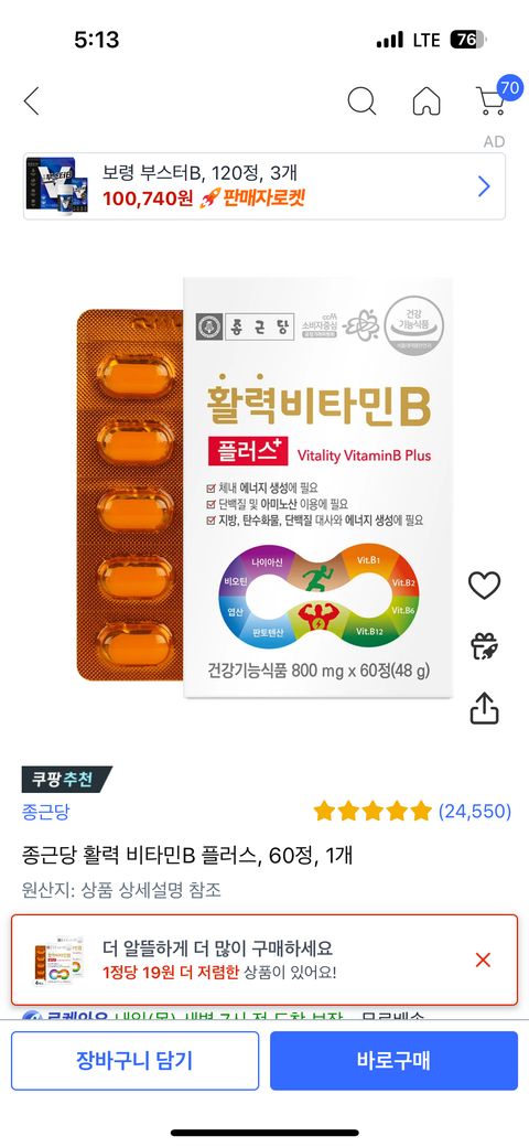 올려주신 비타민B군 제품과 칼슘+마그네슘+비타민D 성분을 같이 드셔도 문제없겠습니다.