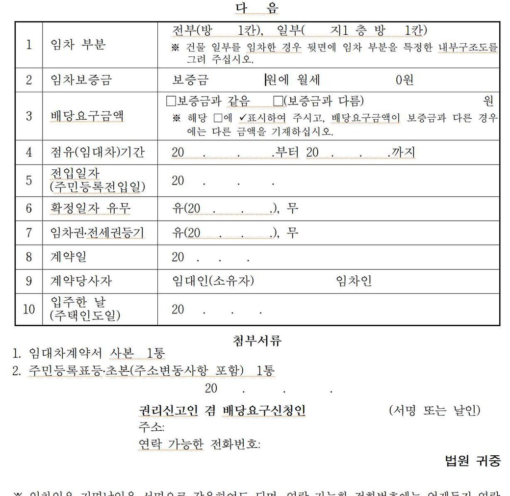 권리신고 및 배당요구신청서(주택임대차) 작성법 질문있습니다.