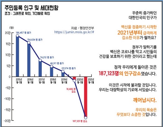 백신 접종으로 인해 그동안 건강했던 사람들도 죽어가기 시작했습니다. 게다가 아나필락시스와 갖가지 질병으로 인해 많은 이들이 죽고… 정부는 보상해주겠다 약속했지만 전혀 이뤄지지도 않았고, 오히려 보상도 거의 푼돈으로 받기도 했습니다. 확산세에 겁 먹지 마세요. 이것이 극소수의 전문의만이 얘기하는 것이라도 한 번 상식적으로 생각해봐야 할 일입니다. 목숨도 잃고… 자유도 잃고… 정부와 언론이 받아주는대로 믿지 마시고, 합리적 판단을 해보시기 바랍니다.