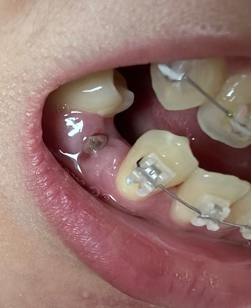 교정때문에 발치한 작은어금니 쪽에 하얀게 생겼는데 빼야할까요?