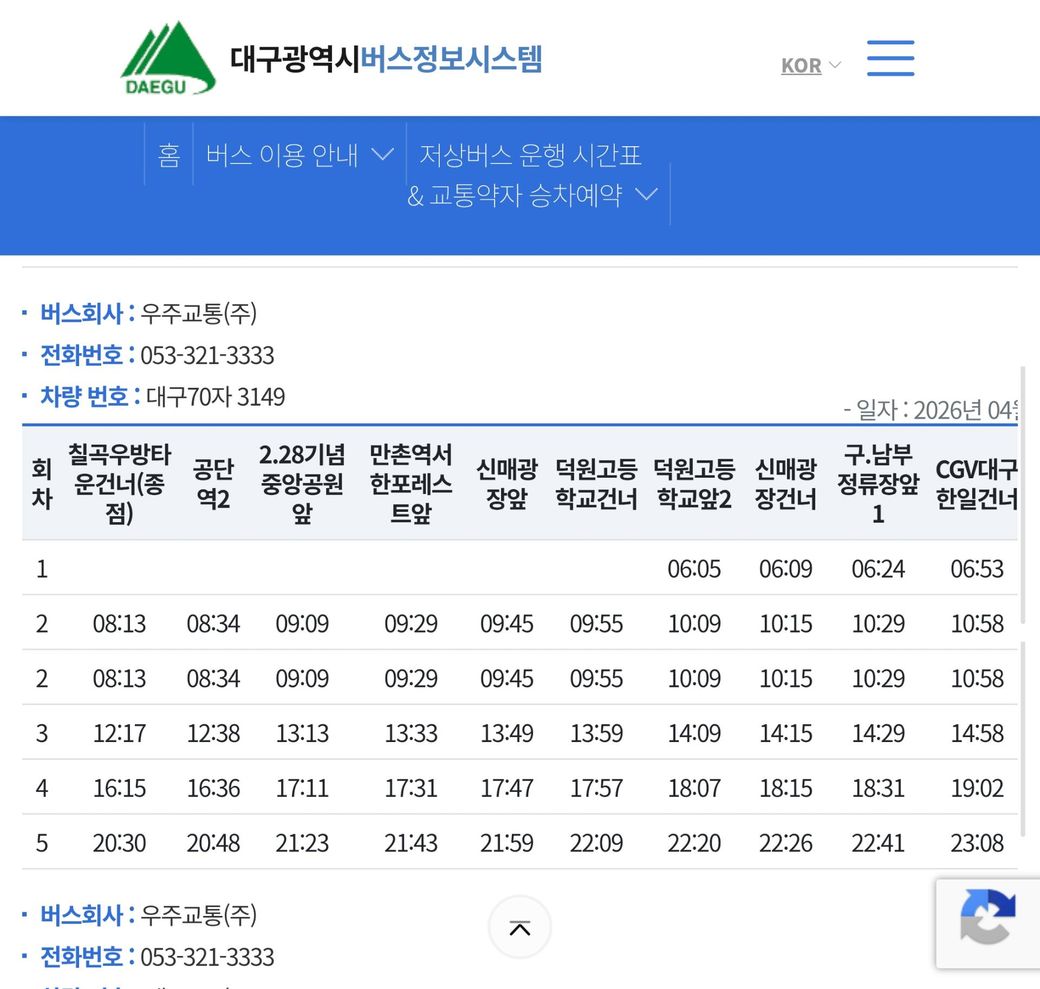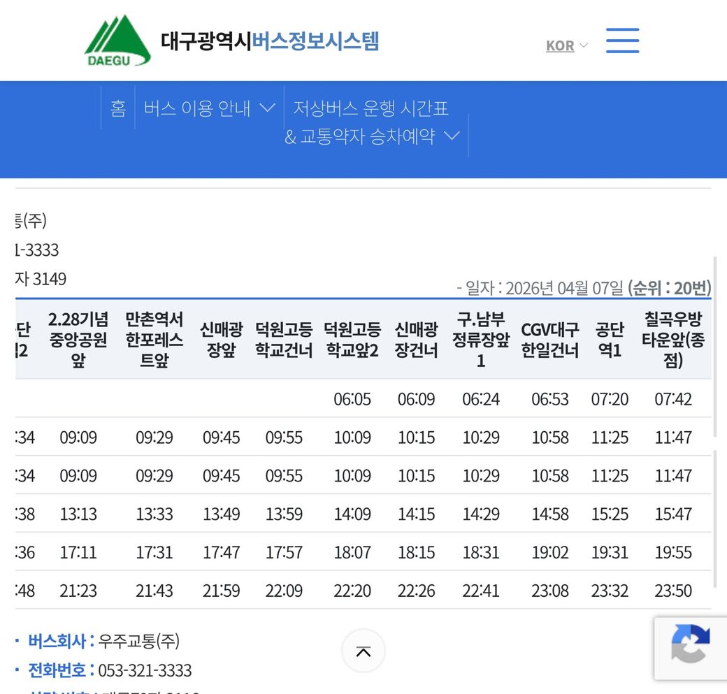 그런데 여기 대구 지역은 시간대랑 배차간격