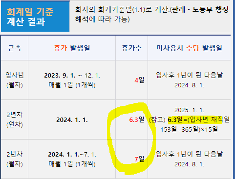위 사진처럼 1년 미만자 24년 연차 계산 시 13.3일의 경우 13일을 부여하나요 아니면 13.5일을 부여하나요?