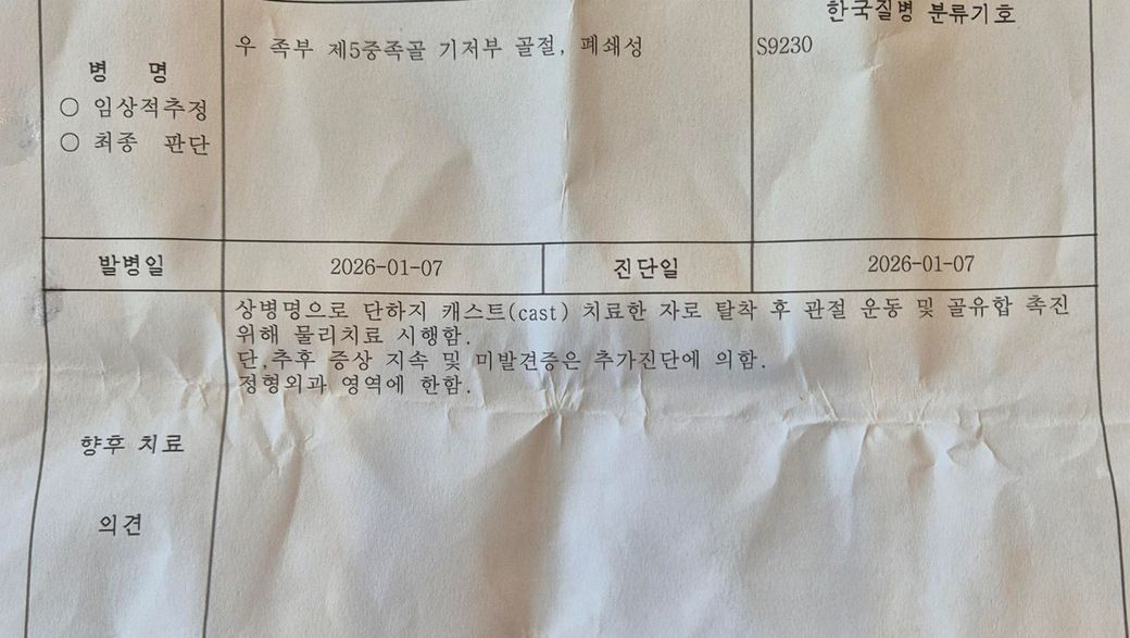 정형외과 관련 소견서에 대해 의견 부탁드립니다.