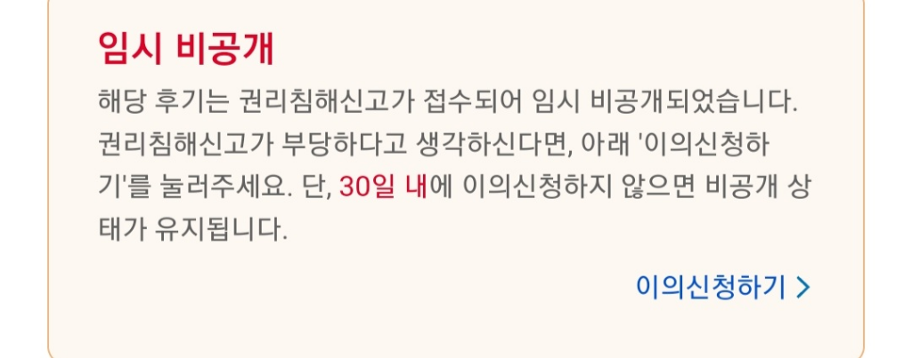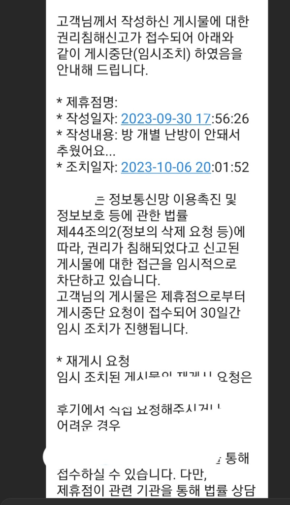 제 게시물이 권리침해라며 임시 게시중단 되었으며