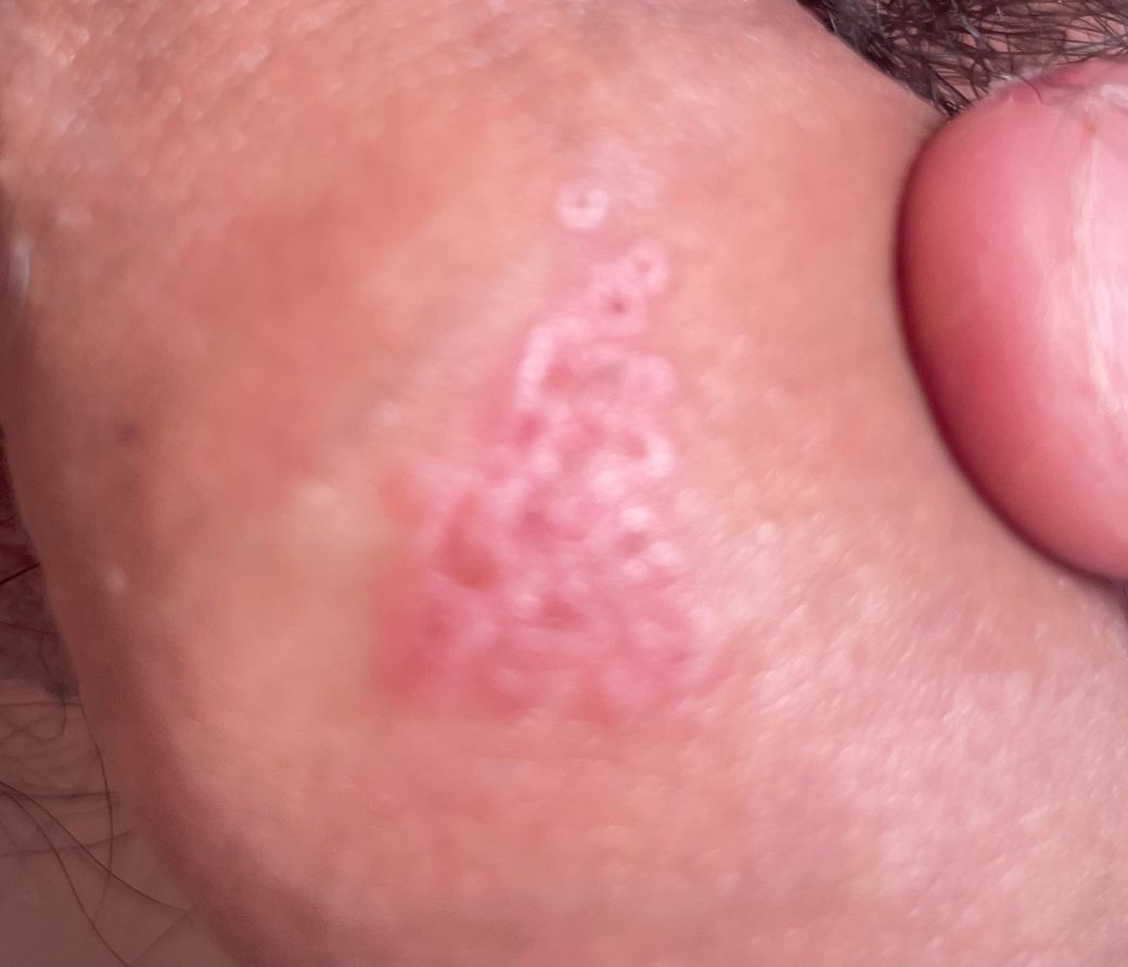 사진상 발적을 동반한 피부 병변의 과각화와 함께 딱지가 관찰되고 있어 습진과 같은 국소 피부염이 발생하였고 가려움으로 인하여 손으로 긁으면서 상처가 발생한 후 딱지가 형성된 것으로 추정됩니다. 이러한 병변은 성병의 대표적인 질환인 헤르페스 감염이나 곤지름에서 관찰되는 수포성 병변이나 사마귀 양상의 결절성 변변이 아니므로 성병 가능성은 낮습니다. 국소 스테로이드 제재 등을 이용한 치료가 필요하므로 피부과나 비뇨의학과 내원하여 진료를 보시는 것을 권해드립니다.