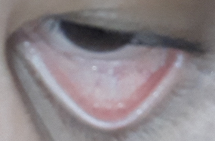 결막 상태를 봐서는 정확한 진단은 어렵습니다. 약간 하얗게 보이기는 하지만 정확한 진단을 위해서는 혈액 검사가 필요합니다.