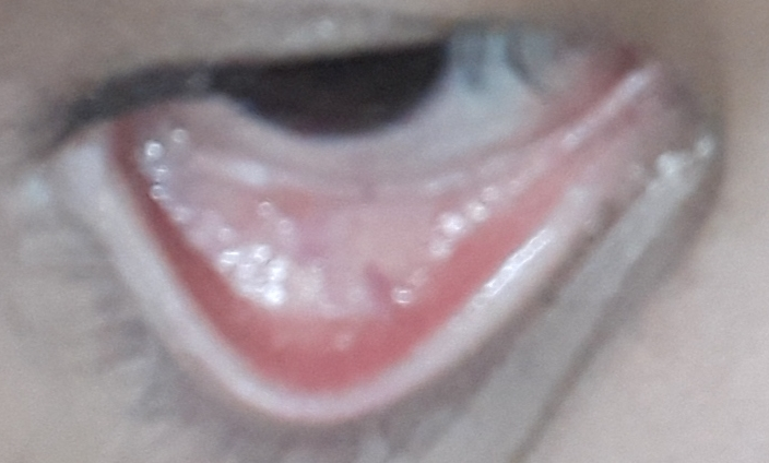 보여주신것 처럼 결막이 창백하면 빈혈을 의심할 수 있는건 맞지만 이것 만으로 빈혈이 있다 없다 단언할 수 없습니다.