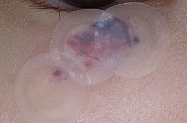 레이져 후 습윤밴드와 같은 패치를 붙이면 딱지가 생기지 않고 피부가 재생됩니다. 딱지 없이 상처가 재생되면 레이저후 흉터나 자국 등의 발생이 줄어들 수 있습니다