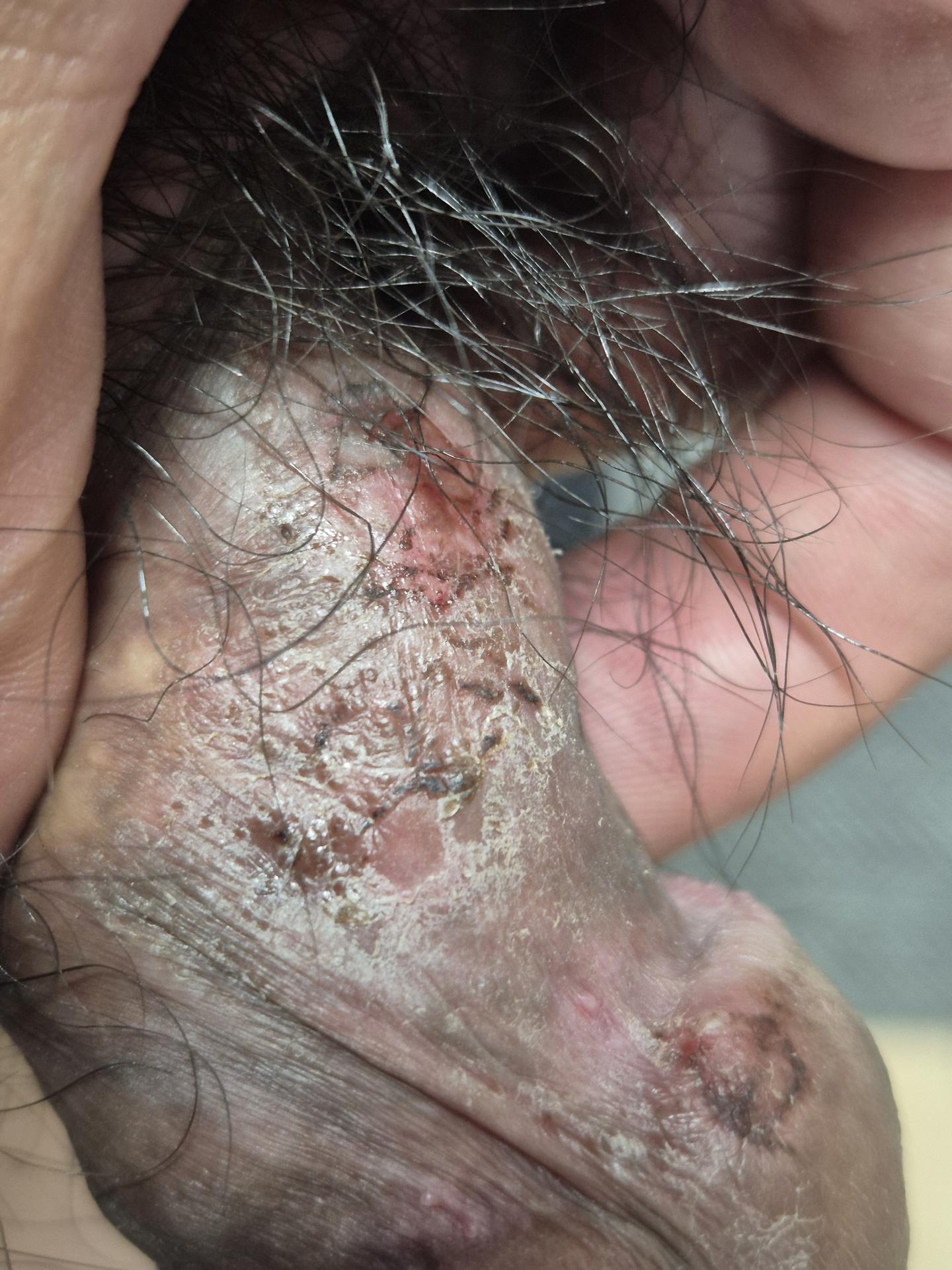 성기부위 기둥.귀두.고환 피부딱지 생기고 따끔합니다