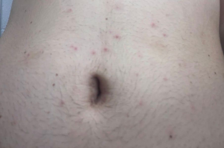 보통 감염 후 2~4주 사이에 열이나 근육통 같은 몸살 기운과 함께 붉은 반점이 나타나는 경우가 많습니다.
