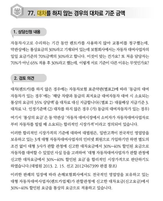 손해보험협회에서는 매년 책자를 통해서 주요 사례집을 배포하고 있습니다.