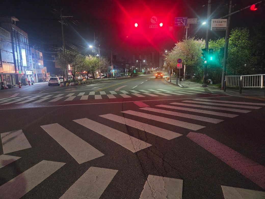저는 1차선 상대차는 2차선을 주행하고 있었습니다. 근데 1차선에는 좌회전 11시 방향 1시방향 총 세갈래로 갈 수 있는 길이 있는데 좌회전 금지표시가 있고 노면에 흰색 지시 방향과 색깔유도선은 11시방향으로 이어져 있지만 직진금지표시는 없고 1차선 도로가 직진을 해도 반대편으로는 2차선 그대로 이어지는 도로여서 저는 직진을 했고 상대 차량은 2차선에서 주행을 하고 바닥에 있는 색깔유도선이 2차선에서 다음 도로 1차선으로 향하게 되어있어서 지나가다가 제 조수석 문과 상대방 앞 바퀴 휀다 부분이 충돌해서 사고가 발생했습니다. 이 경우 이 도로는 교차로로 볼 수 있나요? 제가 알기로는 색깔 유도선은 보조지시일뿐 법적 규제가 없다고 알고 있는데 횡단보도 위에서의 차선 변경은 과실이 더 높게 잡히는 걸로 아는데 이 경우도 적용이 되나요? 상대는 방향지시등 없이 차선변경을 했습니다. 11시 방향으로 가려면 좌회전 신호가 켜져야 진행할 수 있습니다. 좌회전신호가 켜질때는 직진신호 후에 직좌로 신호가 켜지는데 사고날 당시는 직진신호만 켜져있었습니다. 영상 링크 올려드립니다. https://drive.google.com/file/d/1X6msDaY8-i_XtrSOC4KTUevgdTnZO8Uj/view?usp=drive_link
