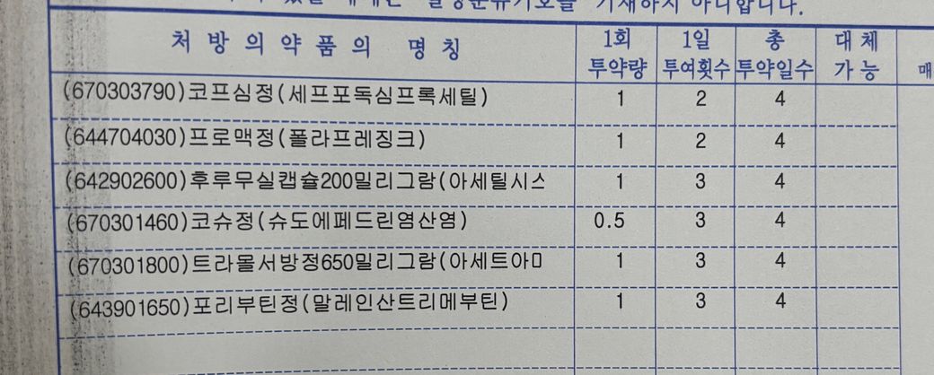 이틀 전, 사진과 같이 감기약을 처방받았는데요 이틀동안은 1:30쯤 아침약을 먹고 8:30쯤 저녁식사 후 점심약을 복용했습니다.