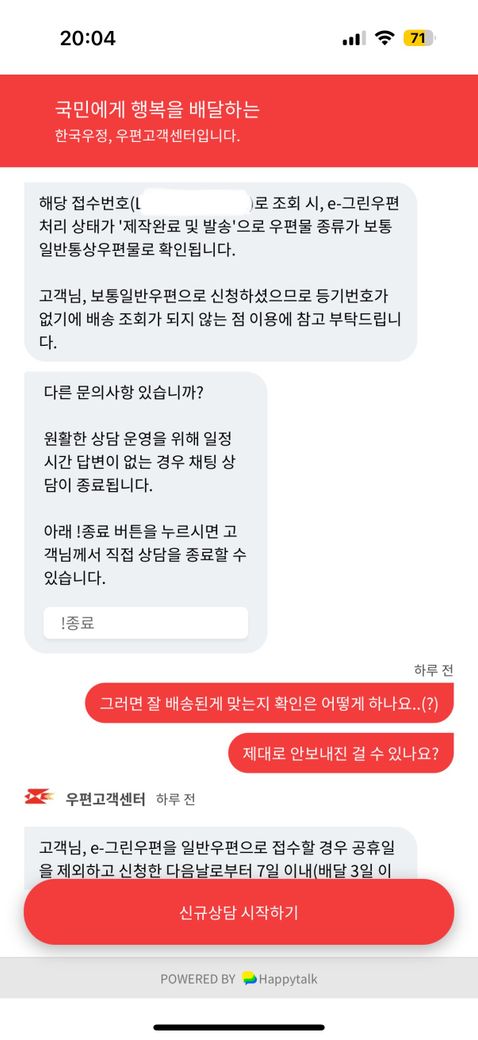 안녕하세요. 한 달 전에 엄벌탄원서를 온라인 그린우편으로 보냈는데, 아직도 ‘준비 중’으로 표시됩니다. 우체국 채팅 상담원에게 문의해 보니, 그린우편이 일반 통상우편으로 처리된 경우 등기번호가 제공되지 않아 도착 여부를 확인하기 어렵다고 합니다. 이미 사기범에게 4년형이 선고된 상황인데, 이 시점에서