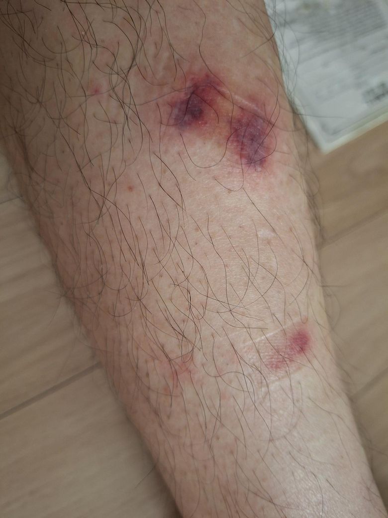 어딘가에 쓸리거나 마찰을 받은 상처처럼 보입니다.