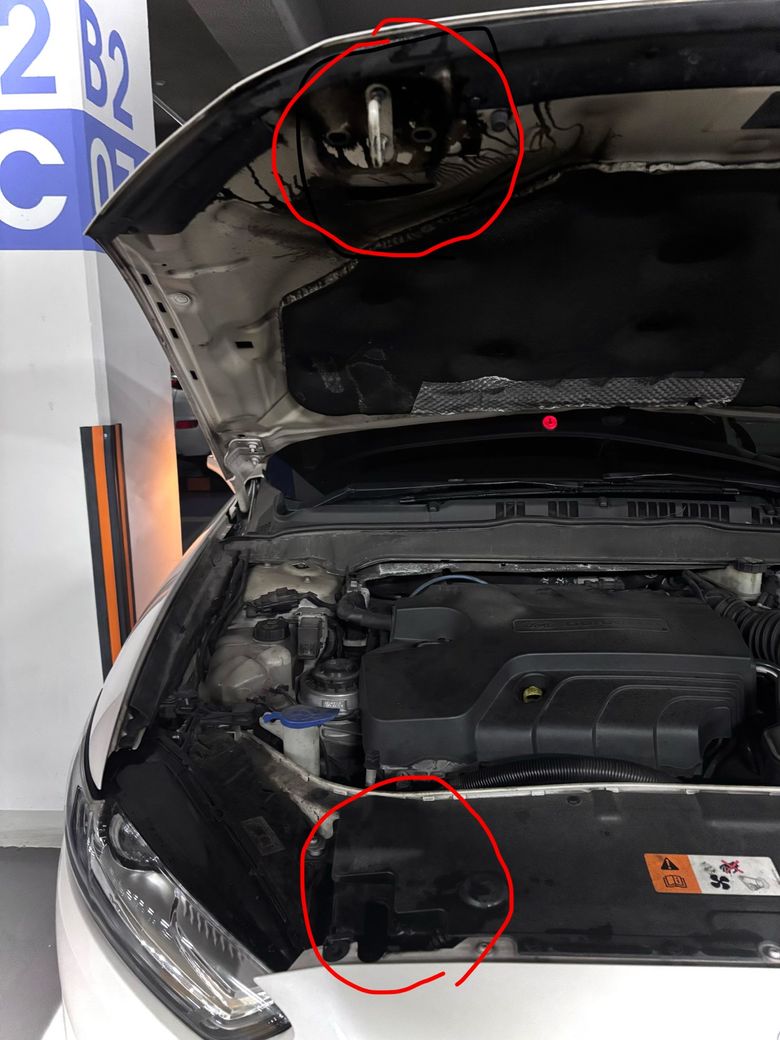 2015년식 포드 몬데오이고 오늘 고속도로 휴게소에 들렀는데 차량 본네트에 검은 물질이 새서 튀었더라구요! 본넷 열어보니 사진상 빨간색 표시 부분에 검은 물질(냄새는 크게 안남)이 뭍어 있었습니다! 무슨 문제인지 수리는 어떻게 해야할지 궁금합니다!