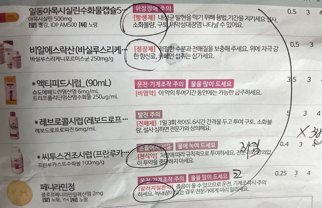 아이 감기약 3번 복용인데 (처방약 모두 3번 동일)