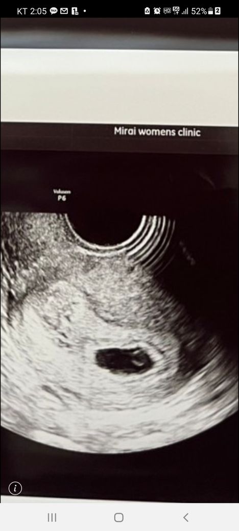 첨부해주신 사진에는 임신낭과 내부의 난황이 관찰되는 것으로 보이며, 대개 임신 초기인 5-6주 경 관찰되는 소견들입니다. 다만 임신 주수 평가에는 마지막 생리 시작일과 초음파 소견에 대한 평가가 함께 이루어지므로, 산부인과에서 더 정확한 답변을 들어보실 수 있으실겁니다.