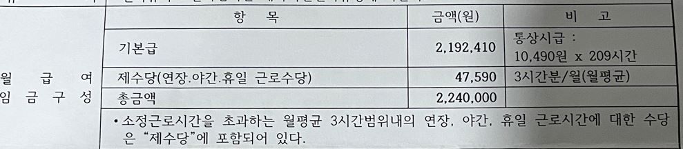 위와 같이 계약서를 작성하였고 토요일 주말에 초과근무를 7시간 했는데요.
