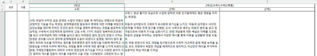 * 1번그림처럼 B열에 이름과 과목을 입력하면
