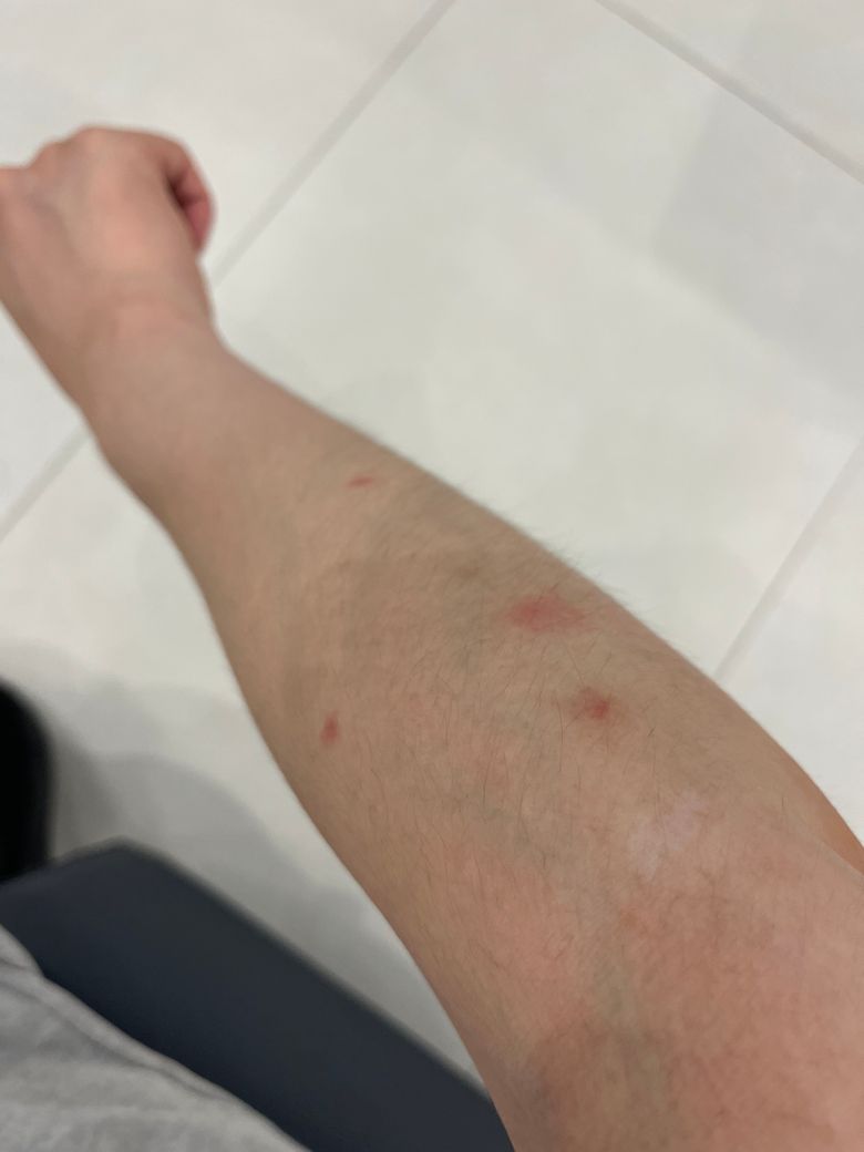 팔쪽에 빨간 반점이 있는데요