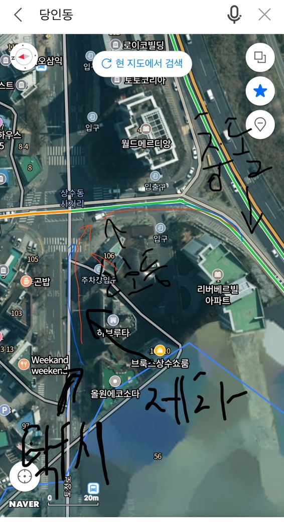 우회전 후 택시는 좌회전 차선을 타고 저는 직진,우회전 차선를 탐 ->