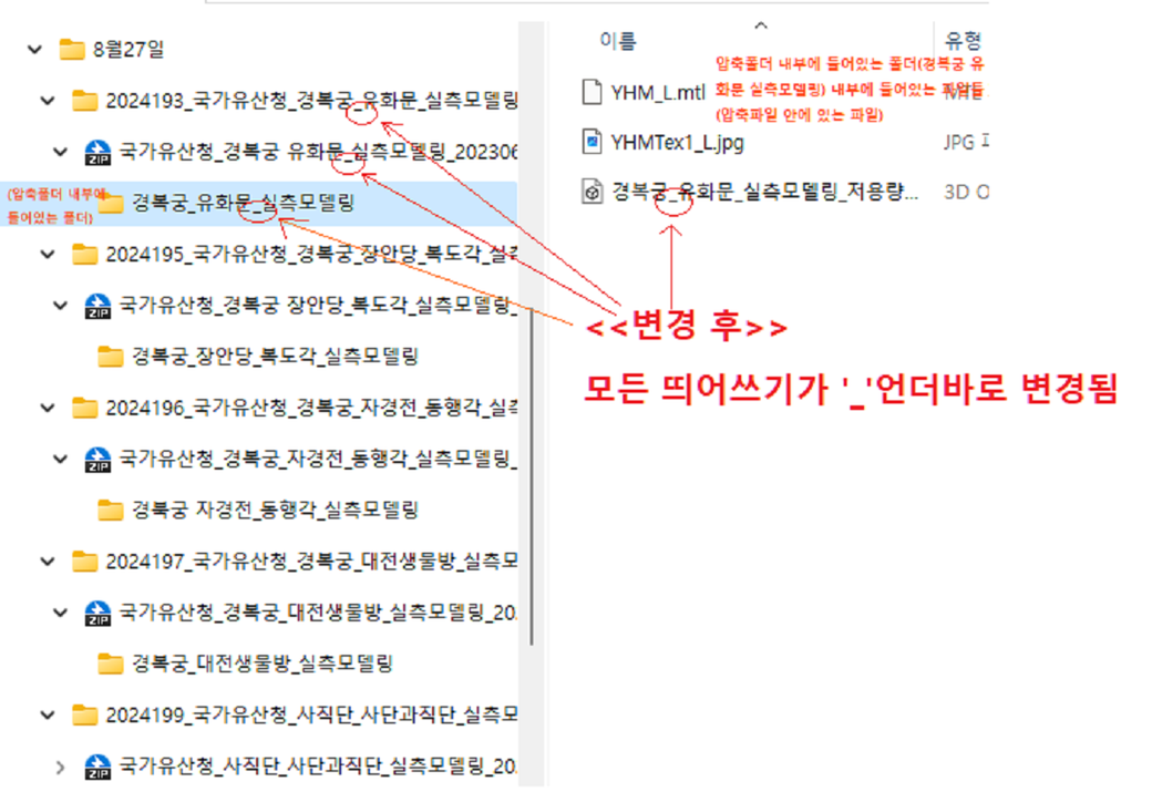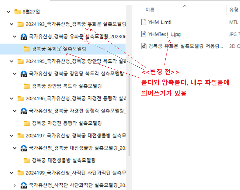 압축폴더(zip) 안에 있는 폴더와 파일명을 일괄변경하고 싶은데요, 압축해제를 하지 않고 조건에 맞게 변경하고 싶습니다.