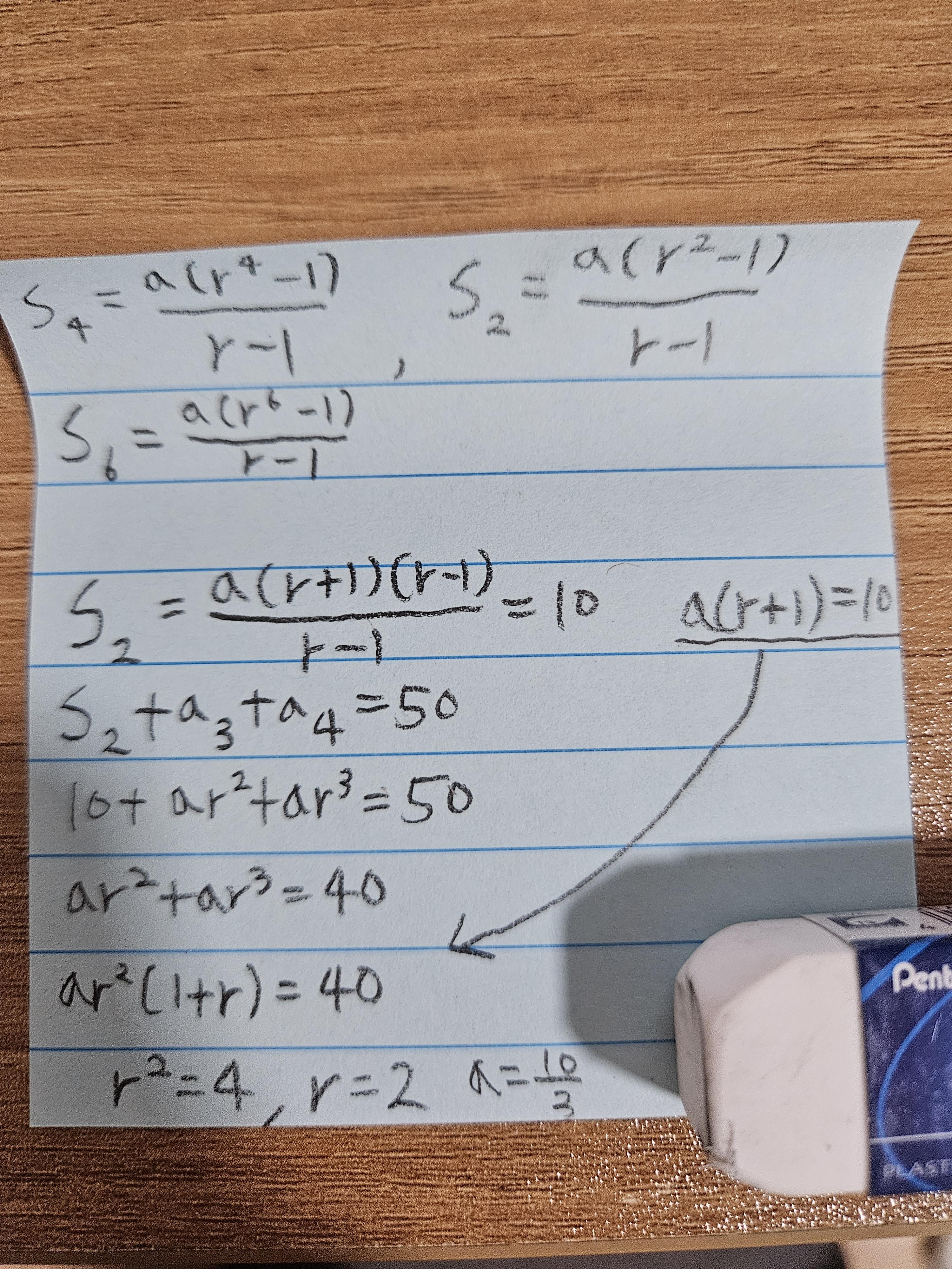 등비수열의 합 공식은 이해 했는데 a와 r을 모르는데 구할수 있나요...?a와 r를 각각 구해야 하나요? 설명 부탁드립니다....