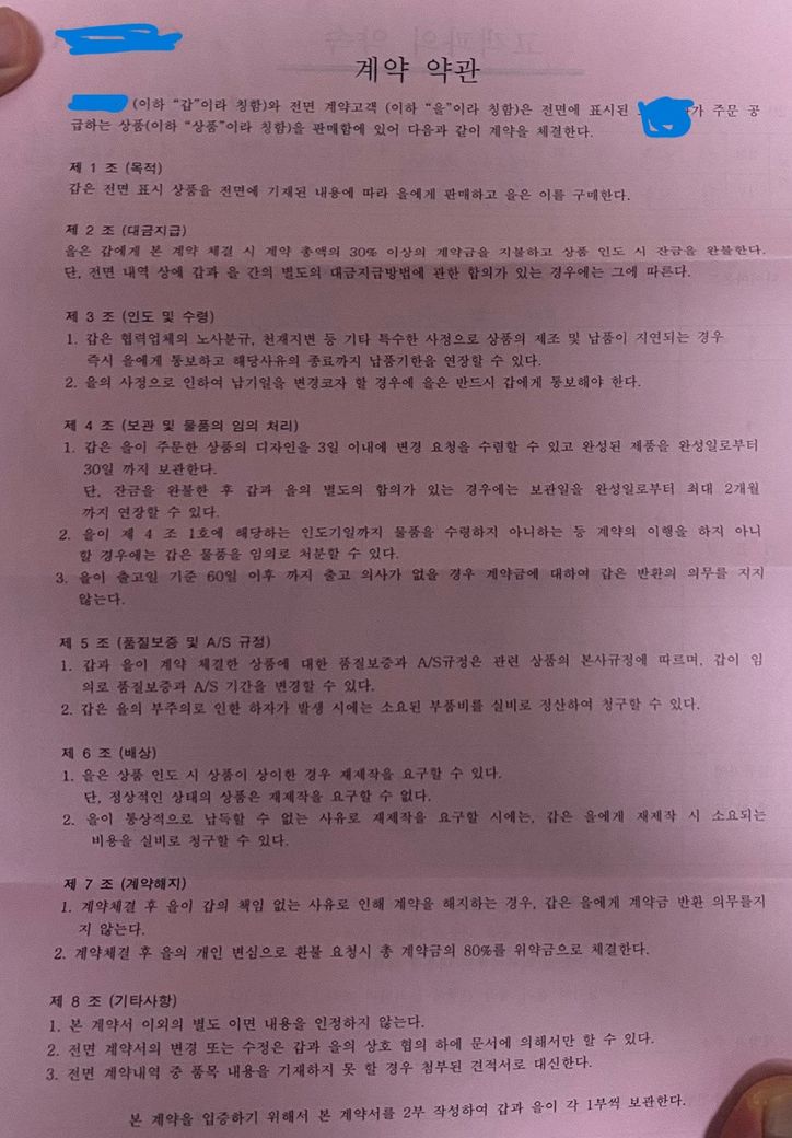 그 외 업체는 계약서에 없는 황당한 요구를 합니다. 계약금이 아닌 물품가액의 80% 위약금을 요구하고 있으며,