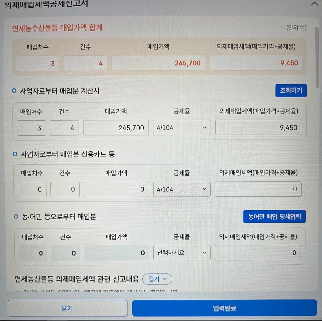의제매입세액공제신고서 매출분 신용카드 도와주세요..