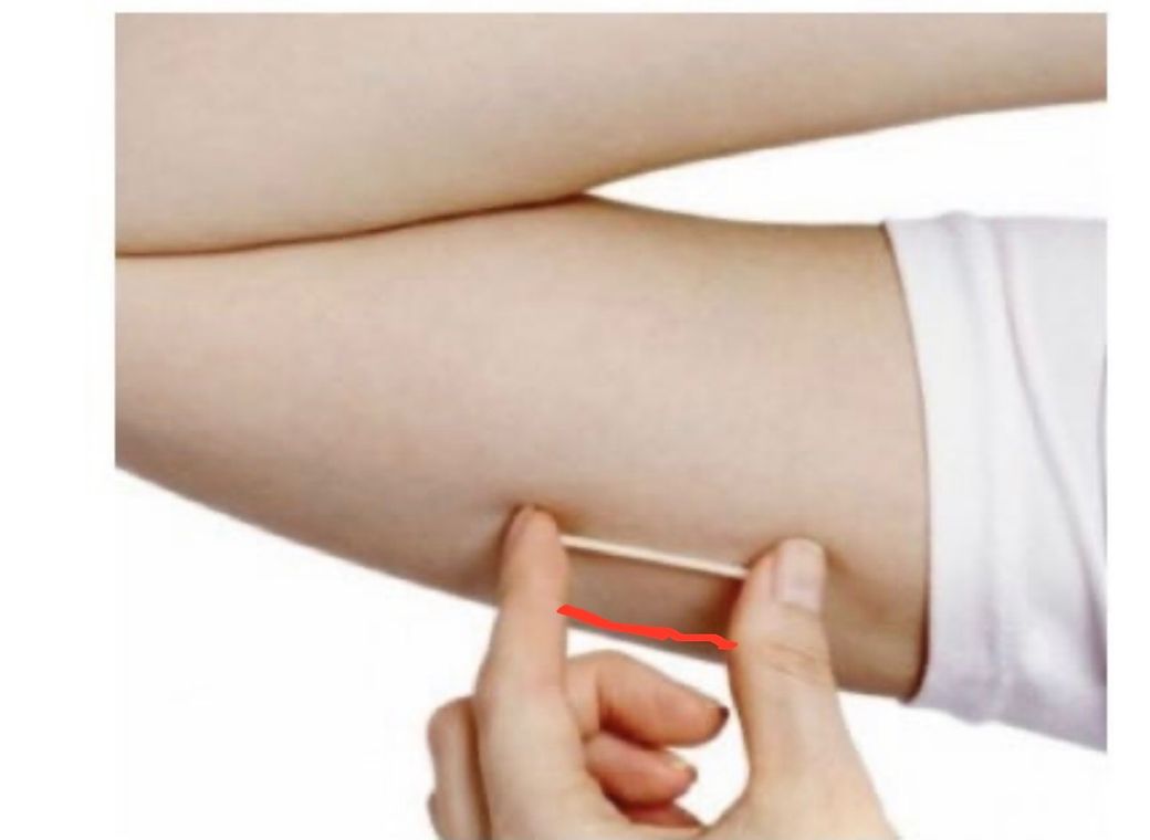 표준 위치는 팔을 살짝 벌렸을 때 겨드랑이 아래쪽으로 이어지는 상완 내측에서, 상완 중앙보다 약간 아래, 내측 신경과 혈관을 피하는 부위입니다. 최근 가이드라인에서는 과거보다 더 “뒤쪽(삼두근 쪽)으로 약간 이동”시키는 것을 권장하여 신경·혈관 손상을 줄이도록 하고 있습니다.