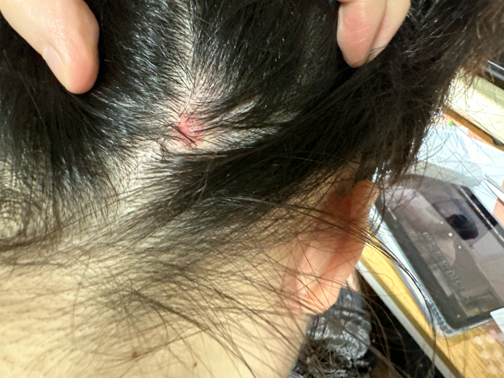 계속 신경이 두피 뾰루지 쪽으로 가 만졌는데 이러다 탈모올까봐 더 이상 안 만지고 항생제 연고를 발라두었습니다.