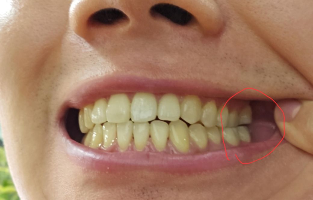 사진과 같이 맨 끝쪽에 있는 등그라미 친 어금니가 떠보이는데