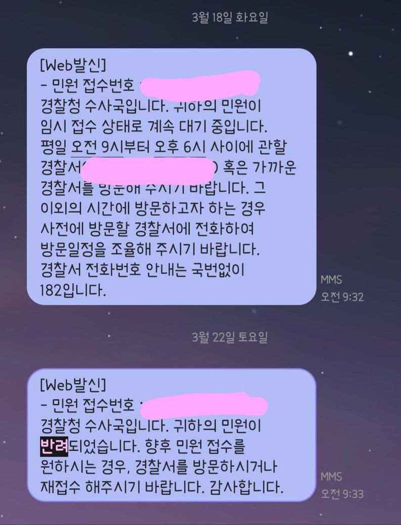ECRM신고 후 경찰서 방문해서 진술서 썼는데 ECRM이 반려됐어요