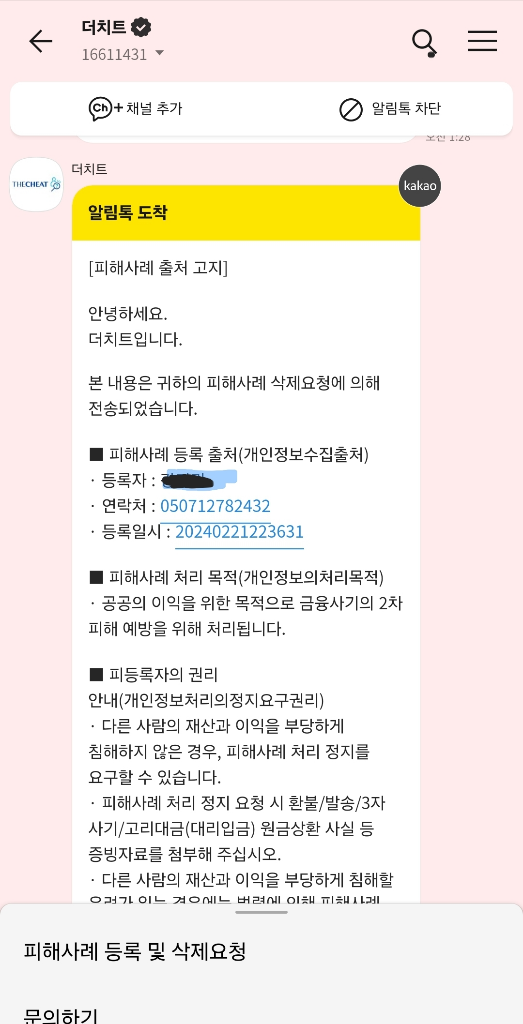 위 사진과 같은 연락처가 실존하는 연락처라고 보기 어려워 허위신고일 가능성을 배제할 수 없고, 이에 대하여는 더치트 운영사에 문의해보셔야 하겠습니다.