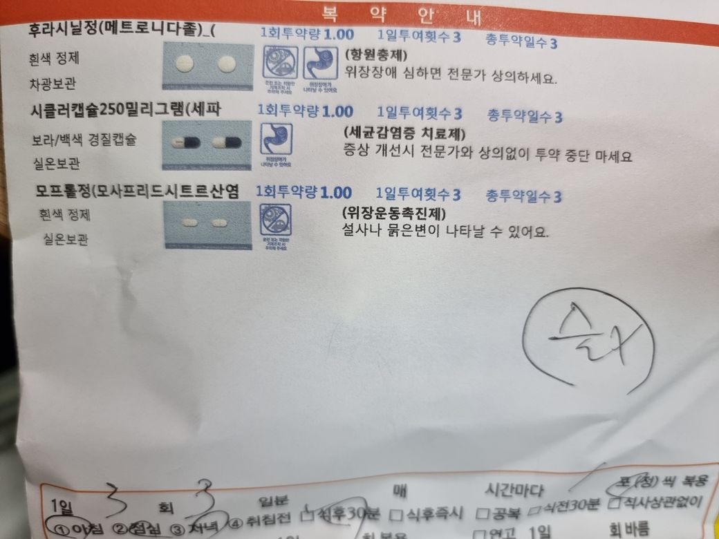 항생제의 경우 공복에 먹으면 속이아프니 꼭 식사 후에 드시길 바랍니다.