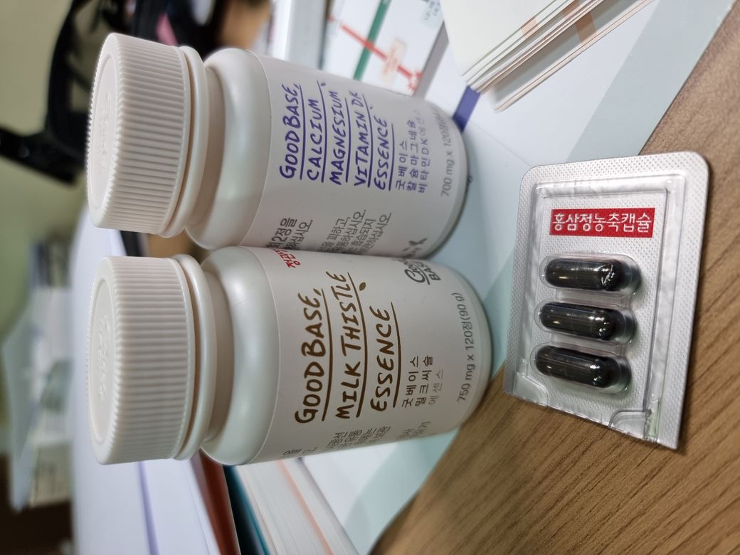 홍삼, 밀크씨쓸, 비타민d/k/마그네슘 건강보조식품