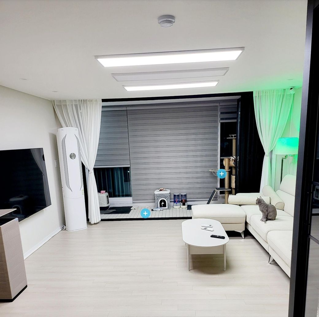거실 전등이 3개 있는데(다운 라이트 제외) 가운데 전등이 독립적으로 온.오프 가능해서 이걸 떼고 실링팬을 달 예정입니다.
