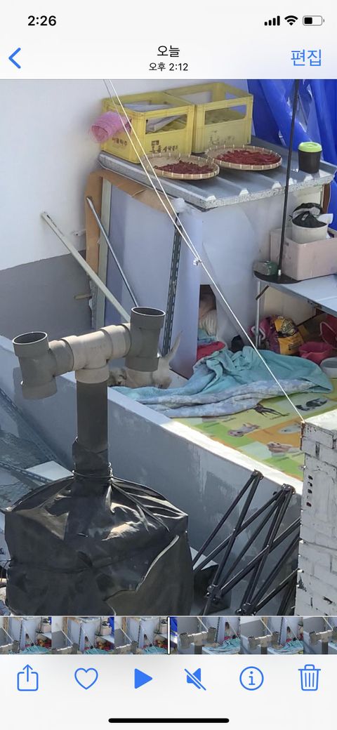 옥상에 강아지 집이나 물통, 밥통이 다 구비돼 있고 집안에 갇혀 있는 강아지들 보다 뛰어다닐 수 있으니 더 나은 환경에서 사는 거 같기도 하고 기본적인 관리를 받는 강아지니 괜한 오지랖이 아닌가 생각이 들기도 합니다. 그런데 계절이 바뀌고 여름이 오면 저 아이가 불볕 더위 속에 방치될 텐데 걱정이 되고 일단 저렇게 지내는 새끼 강아지가 기본적으로 안쓰럽네요.