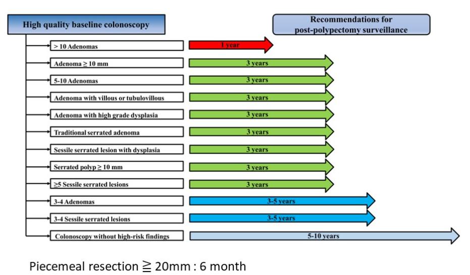 용종이 1cm를 넘지 않고 조직검사상 특별소견이 없다면 6개이면 3년 4개이면 3-5년