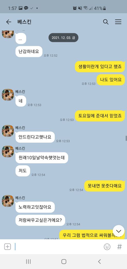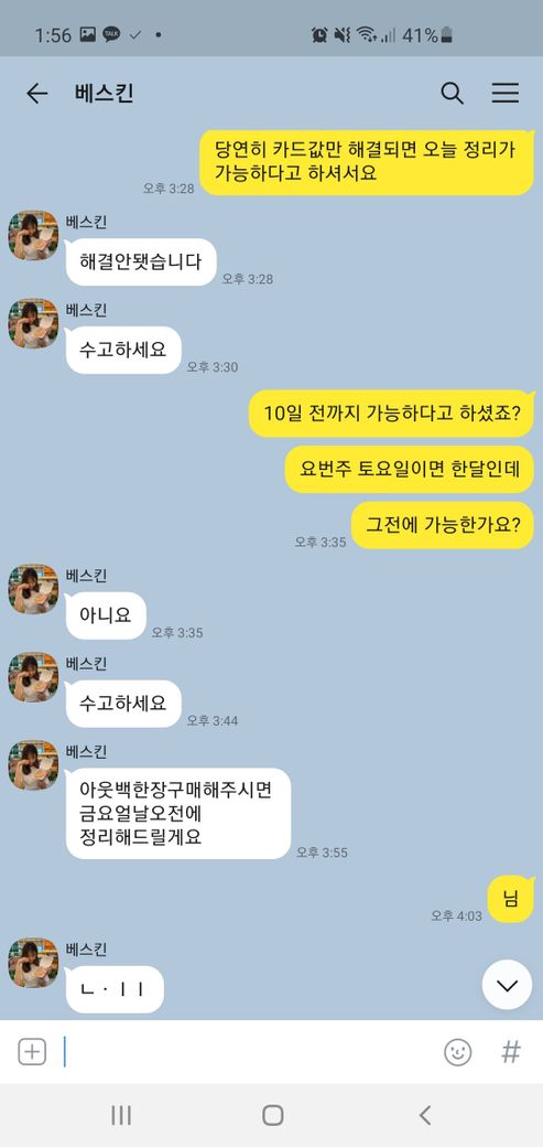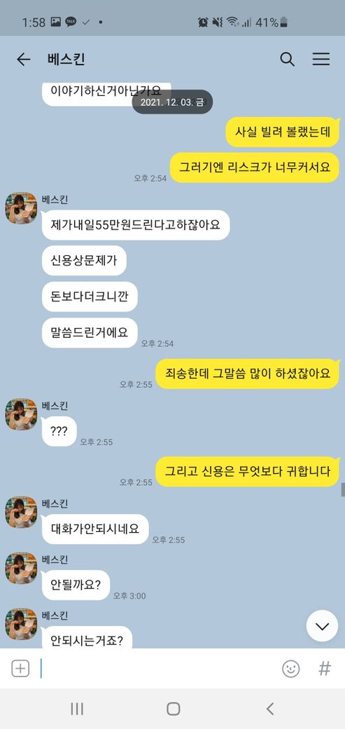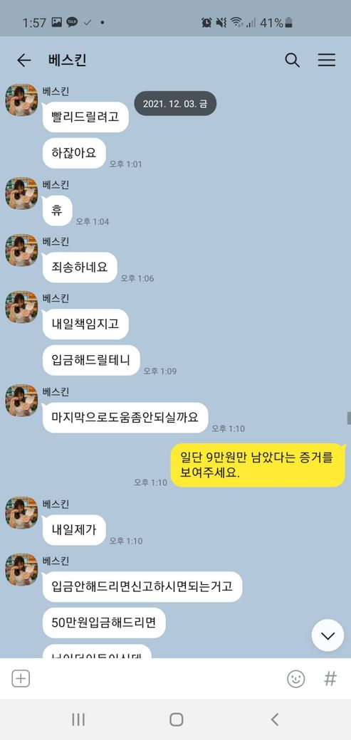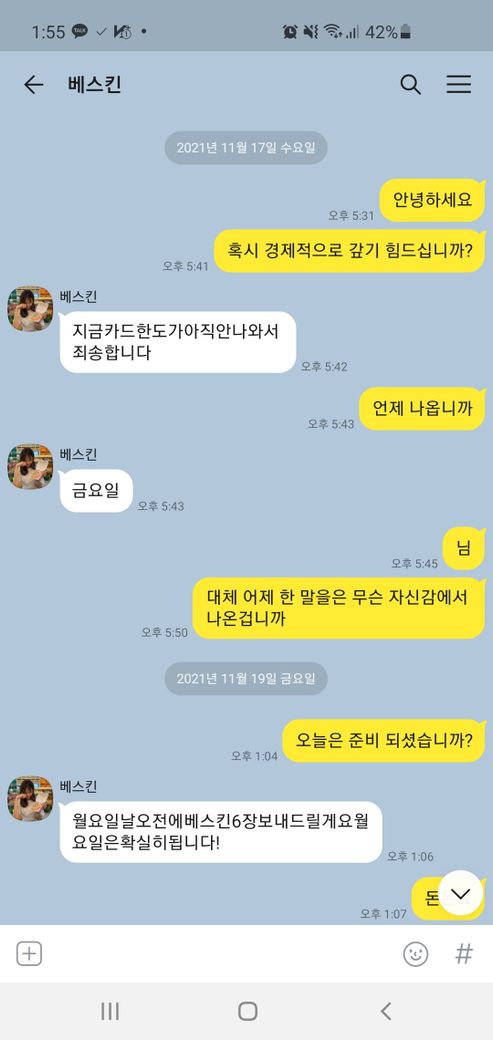 저는 고2학생으로 당근마켓이란 앱에서 총 9만원 상당의 기프트콘을 구매하였습니다. 그러나 돈은 한달이 가까이 되도록 받지 못하고 지급을 5번 넘게 미룬것 같습니다. 심지어 이사람이 자신의 카드빚 때문에 돈을갚지 못한다며 돈을 3일내에 갚는 조건으로 10만원 상당의 쿠폰 구매제의를 한뒤 다시 카드빚이 모지라다면서 5만원 상당의 쿠폰 구매를 제외했습니다. 그러나 돈을 갚기로 한 당일 전날 또다시 확인하지 못한 카드빚이 있다며 9만원을 빌려줄것을 요구하고 저는 들어주었습니다. 결국 저는 당일 돈을 받지 못하였고 상대의 연락만을 기다리고 있습니다. 이제는 신고하고 싶은데 쿠폰을 사주고 돉을 빌려주면서 약속한 돈만 55만원하고 부가적 요소까지 받기를 약속받았습니다. 돈을 받을수있는 방법이 있을까요? 여러분들의 지혜를 빌리고자 합니다. 학생인 제가 어떤일을 할수 있을지, 인적사항에 누가 되진 않을지 궁금합니다.