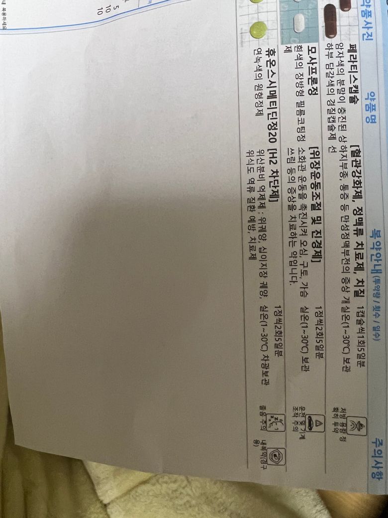 근데 처방받은 약 아침약은 휴온스시메티딘정20 , 모사프론정 이렇게 두알이고 저녁약은 페라티스캡슐 추가되어 총 세알인데