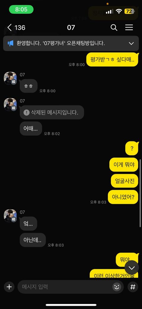 얼굴을 평가하는 방을 만들었고 얼굴 평가를 한다고 했음에도 상대방이 임의로 성기사진을 보낸 것은 명백히 성적인 목적의 행위로서 성적 수치심 또는 혐오감을 줄 수 있는 행동입니다. 이 경우 통신매체이용음란죄가 적용되기 충분하다고 판단되며, 가까운 경찰서로 신고하여 수사를 요청하시는 것도 가능하겠습니다.
