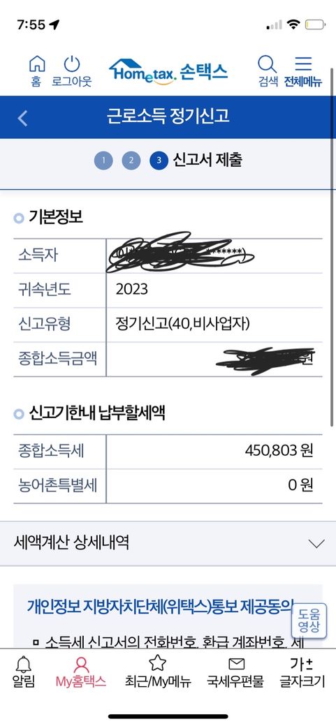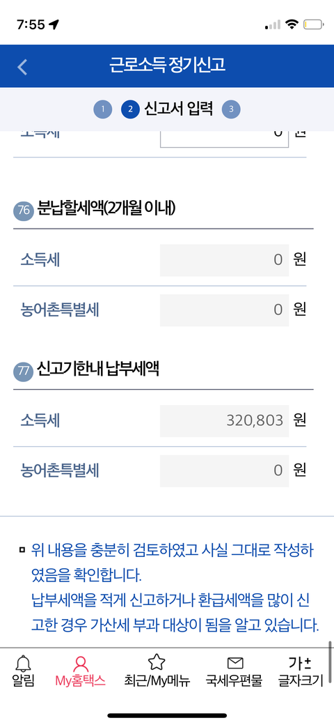 종합소득세 다 작성하고 저장하고 제출하려는데 마지막에 뜬 금액이랑 넘어가서 금액이 달라져요… 왜이러는걸까요? 32만원 납부세액이라고 뜨는데 그 다음으로 넘어가면 금액이
