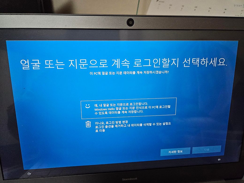 사진으로 보이는 증상으로 봤을때는 생체인증 로그인 방식을 사용할수 없는 현상으로 보이고