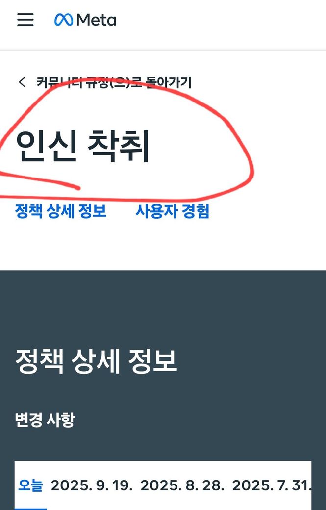 페이스북과 연결된 계정도 동일 정책에 따라 접근이 막힐 수 있으므로