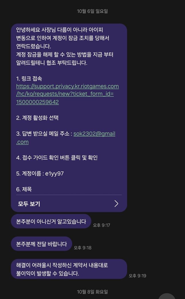 그러고 3일 후 3대주분이 아이피변동되어 계정이 잠금 조치를 당했다고 문자가 왔습니다.