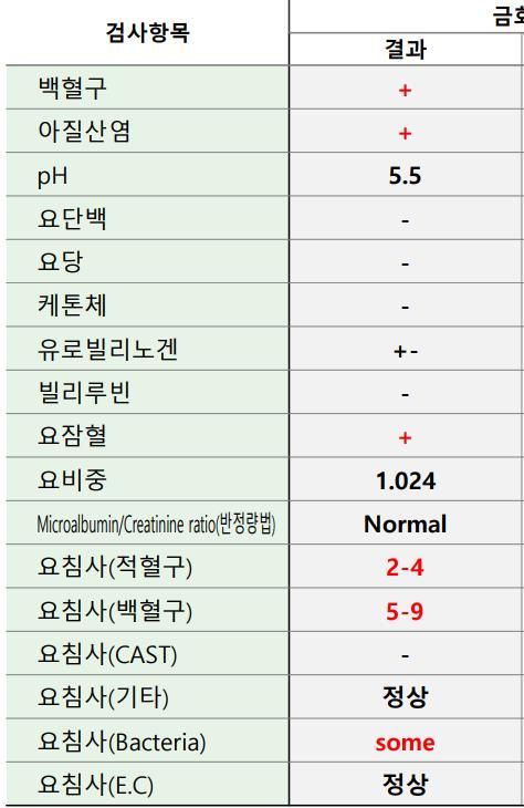 소변검사 요화학검사 결과 안좋은거같아요