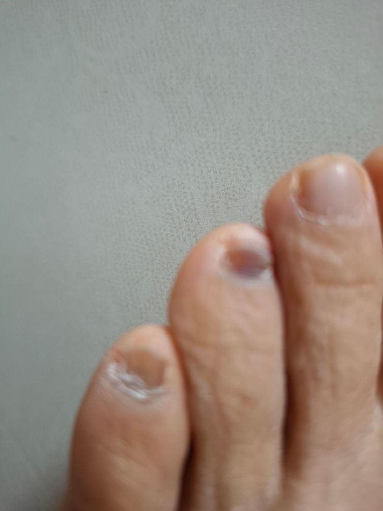 1.엄지발톱 왼쪽 끝부분 🌙 초승달 모양만큼 불투명한 상색으로 변한거는 발톱균인가요?