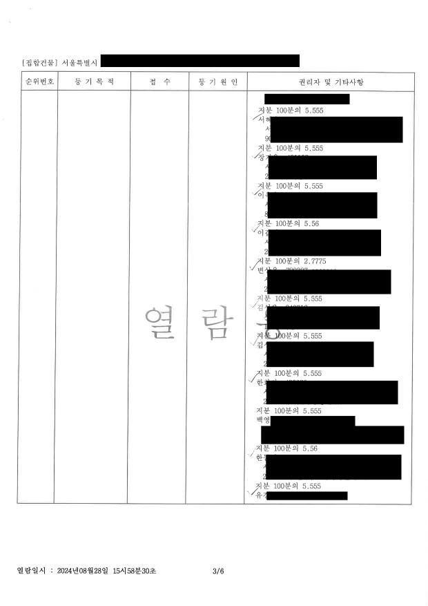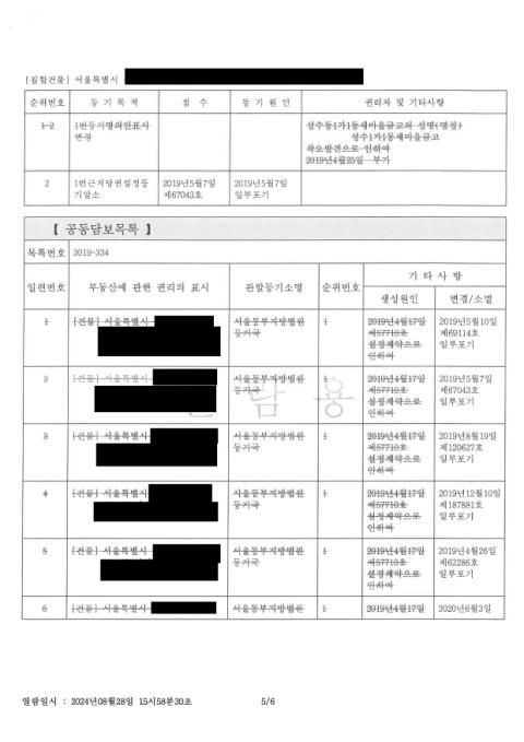 3. 공동담보목록에 같은 건물 다른 호수들이 여러차례 있었는데, 현재는 모두 빨간 줄이 그어져 있는 상태입니다. 신경쓰지 않아도 되는 부분일까요?